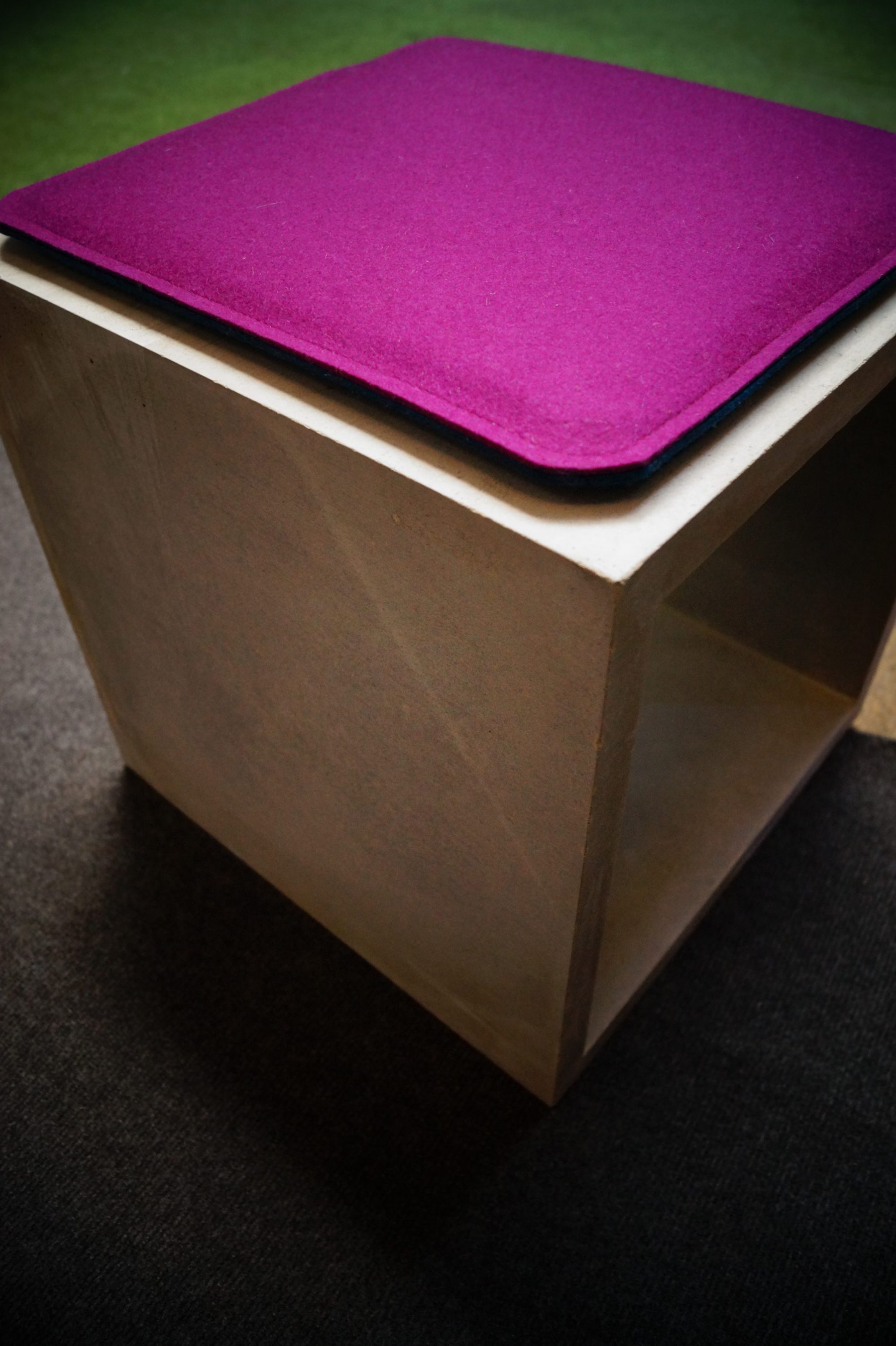 Der klassischen Würfel in den Abmessungen 38cm*38cm*38cm kann als Beistelltisch oder Hocker, im Innen- wie im Außenbereich, einzeln oder gruppiert zum Einsatz kommen. In jedem Fall ist er ein Hingucker und treuer Begleiter. Auf Anfrage kann er auch in der doppelten Breite angefertigt werden. Zudem hat Pesch Concrete sein Farbspektrum um Schwarz-, Gelb,- Grün und Rottöne erweitert. Preis für den einfachen Würfel: 110,- € inkl. Anlieferung in einem Umkreis von 60 km.